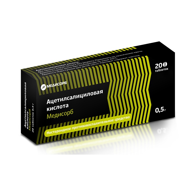 Ацетилсалициловая кислота Медисорб 500 мг таблетки 20 шт