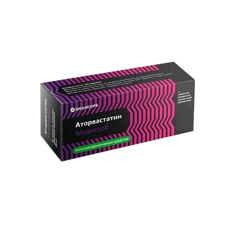 Аторвастатин Медисорб 20 мг таблетки покрытые пленочной оболочкой 30 шт
