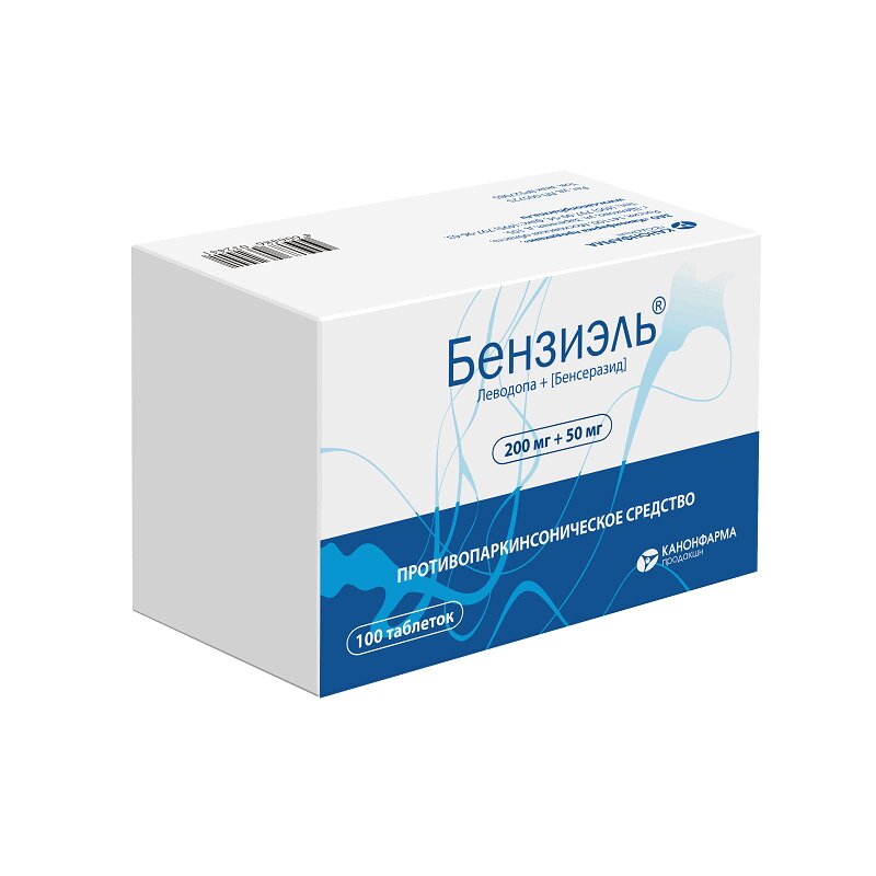 Леводопа/бенсеразид - комбинированное противопаркинсоническое лекарственное средство, содержащее предшественник дофамина и ингибитор периферической декарбоксилазы ароматических L-аминокислот. При паркинсонизме нейромедиатор дофамин образуется в базальных ядрах в недостаточных количествах. Заместительная терапия проводится путем применения леводопы - непосредственного метаболического предшественника дофамина. Большая часть леводопы превращается в дофамин в периферических тканях (кишечник, печень, почки, сердце, желудок), который не участвует в реализации противопаркинсонического эффекта, поскольку периферический дофамин плохо проникает через ГЭБ, а также ответственен за большинство ее нежелательных реакций. Блокирование экстрацеребрального декарбоксилирования леводопы является весьма желательным. Это достигается одновременным введением леводопы и бенсеразида - ингибитора периферической декарбоксилазы ароматических L-аминокислот, который снижает образование дофамина в периферических тканях, что косвенным образом приводит к повышению количества леводопы, поступающей в ЦНС - с одной стороны, и к уменьшению проявлений нежелательных реакций леводопы - с другой. Комбинация этих веществ в соотношении 4:1 обладает такой же эффективностью, как и леводопа в высоких дозах.