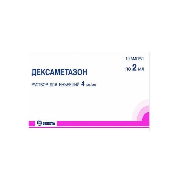• Дексаметазон 4 мг/мл раствор для инъекций 2 мл 10 шт