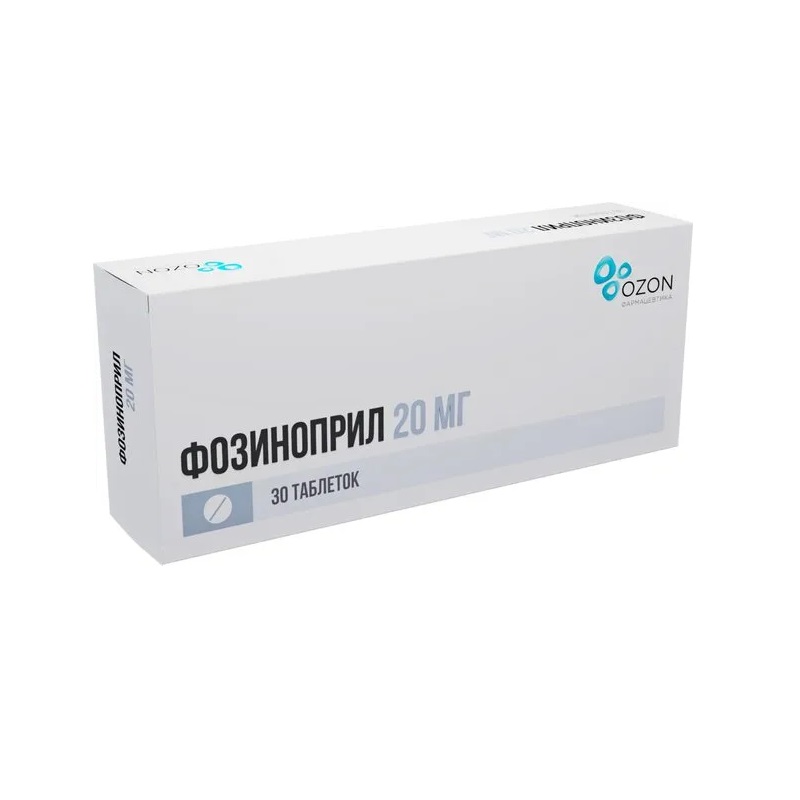 Инструкция по применению Фозиноприл таблетки 20 мг 30 шт