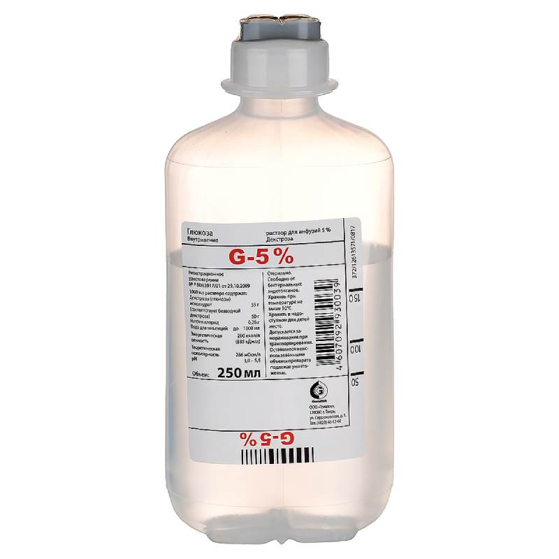 Изотонический раствор декстрозы (5%) используется для пополнения организма жидкостью. Кроме того, он является источником ценного питательного вещества, которое легко усваивается. При метаболизме глюкозы в тканях выделяется значительное количество энергии, необходимой для жизнедеятельности организма.