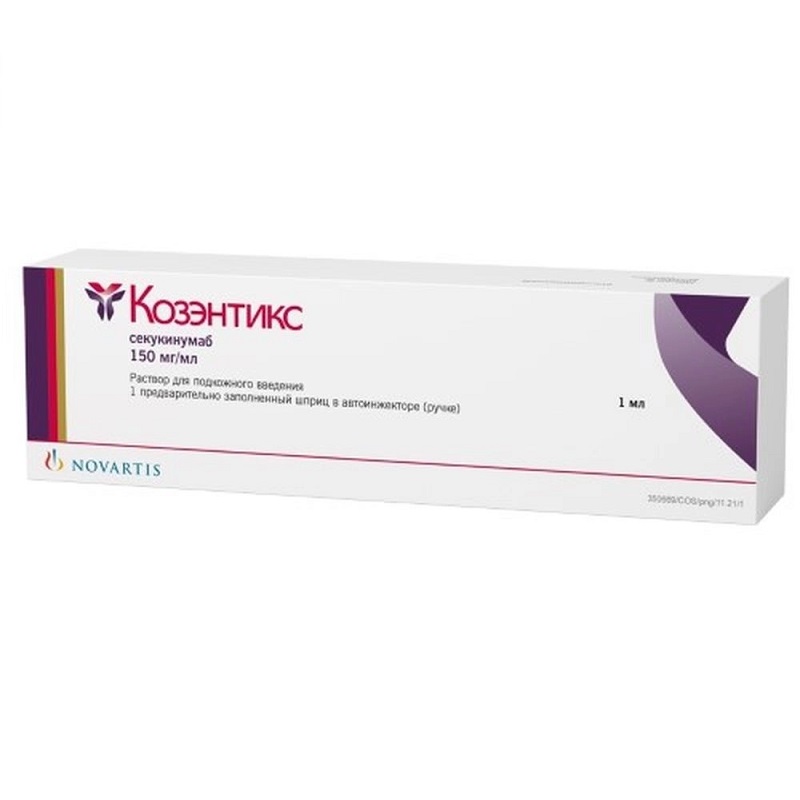 По данным клинических исследований препарата Козэнтикс у пациентов с псориазом, псориатическим артритом и аксиальным спондилоартритом (анкилозирующим спондилитом и нерентгенологическим аксиальным спондилоартритом) в <1% случаев наблюдалось образование антител к секукинумабу к 52 неделе терапии. Около половины антител, образовавшихся на фоне терапии, являлись нейтрализующими, что не ассоциировалось с потерей эффективности терапии или влиянием на фармакокинетические параметры препарата.