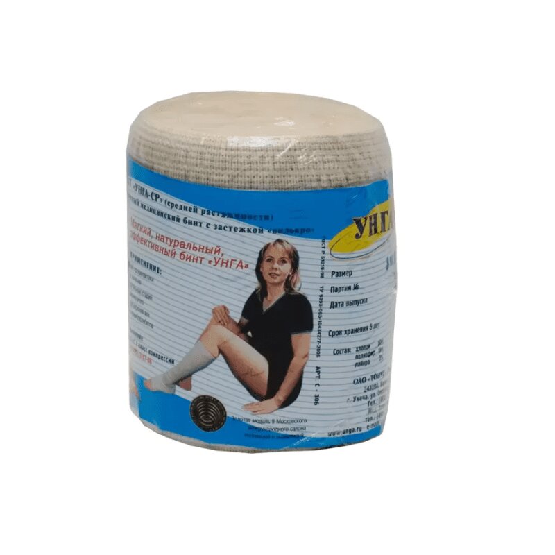 Бренд УНГА - ведущий бренд компрессионного трикотажа, послеоперационных и лечебных бандажей, лечебного белья, бинтов эластичных и спортивных изделий УНГА-ВР БИНТ ЭЛАСТИЧНЫЙ МЕДИЦИНСКИЙ С ЗАСТЁЖКОЙ - Артикул С-305 Длина: 5,0 м Ширина: 8 см Застёжка - велкро (липучка) Бинт медицинский эластичный «УНГА-ВР» (II-ой класс компрессии) предназначен для лечения варикозного расширения вен III, IV степеней; в комплексной терапии тромбофлебитов, после склерозирования и флебэктомии; при лечении растяжений, травм суставов (вывихов, ушибов). Бинты изготовлены на основе эластомера LYCRA ® и натурального хлопка (до 80%). Благодаря многослойности полотна, с телом пациента контактирует только хлопок. Эта технология улучшает паровлагообмен и позволяет коже дышать. Застёжка-липучка и оптимальная ширина полотна делают использование удобным. Использование современных материалов и европейских технологий делает изделия надёжными и долговечными. Бинт сохраняет стабильную компрессию после многократных стирок. БЕЗОПАСНОСТЬ Полная безопасность для здоровья достигается за счет большого содержания натурального хлопка. Это снижает риск развития аллергических реакций. ЭФФЕКТИВНОСТЬ В разработке приняли участие специалисты Института хирургии им. А.В. Вишневского РАМН. К тому же эффективность подтверждена клиническими исследованиями. Соблюдение всех отраслевых стандартов гарантирует высокое качество. КОМФОРТ Специальная многослойная технология улучшает паровлагообмен, позволяет коже дышать. Застёжка-липучка и оптимальная ширина полотна делают использование удобным. ДОЛГОВЕЧНОСТЬ Использование современных материалов и европейских технологий делает изделия надёжными и долговечными. Сохраняет стабильную компрессию после многократных стирок.
