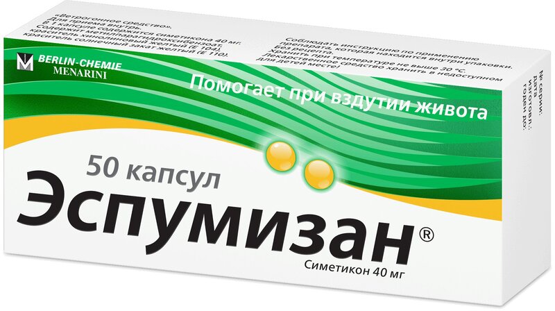 Инструкция по применению Эспумизан 40 мг капсулы 50 шт
