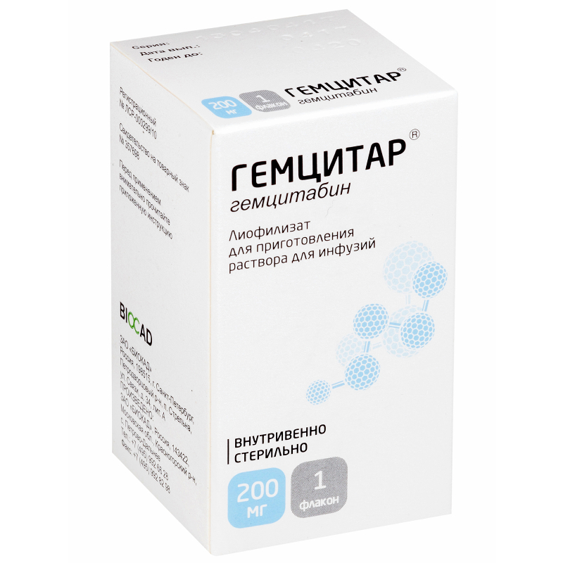 Инструкция по применению Гемцитар 200 мг лиофилизат для приготовления раствора для инфузий