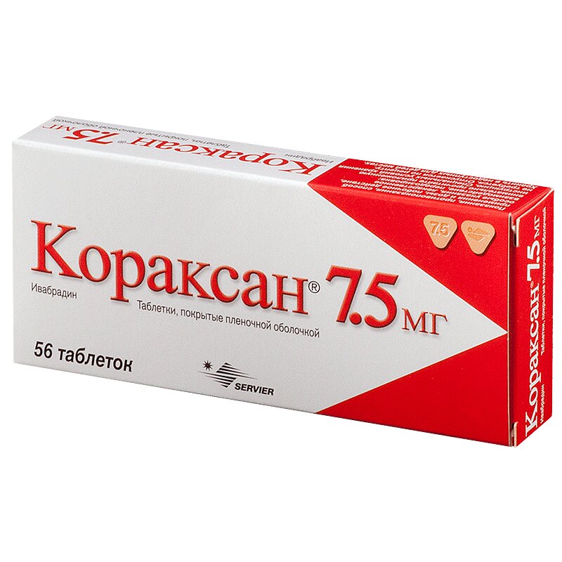 Если симптомы сохраняются в течение 3–4 недель и если начальная дозировка хорошо переносилась и ЧСС в состоянии покоя остается более 60 ударов в минуту, доза может быть увеличена до следующею уровня у пациентов, получавших препарат Кораксан® в дозе 2,5 мг 2 раза в день или 5 мг 2 раза в день. Поддерживающая доза препарата Кораксан® не должна превышать 7,5 мг 2 раза в день.