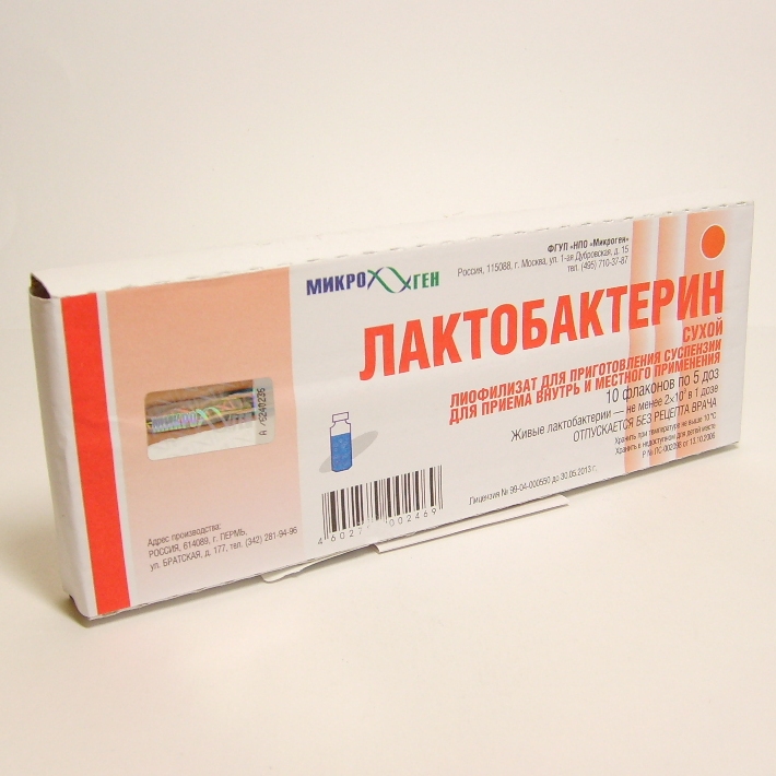 Инструкция по применению Лактобактерин лиоф.д/приг.суспен.для приема внутрь и мест.прим.5доз 10 шт
