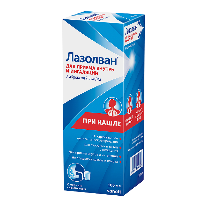 Инструкция по применению Лазолван 7,5 мг/мл раствор для приема внутрь и ингаляций 100 мл
