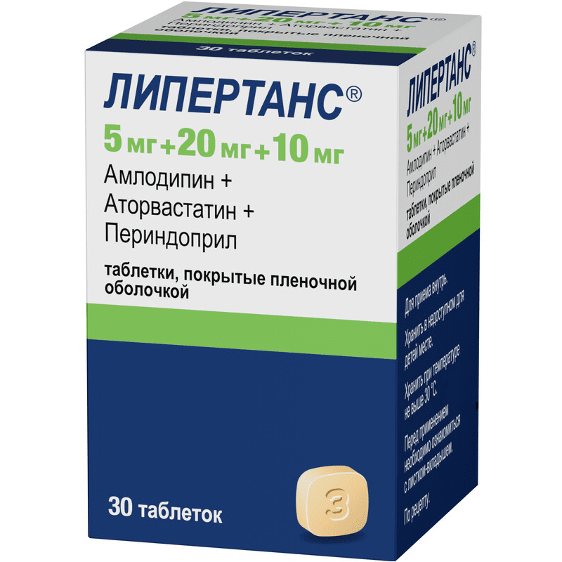 Липертанс 5 мг+20 мг+10 мг таблетки покрытые пленочной оболочкой 30 шт