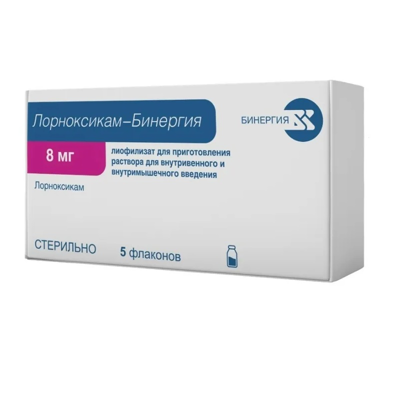 Лорноксикам-Бинергия 8 мг лиофилизат для приготовления раствора для внутривенного и внутримышечного введения 5 шт