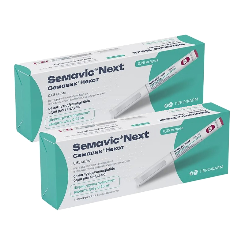 Цены на Набор 2Х Семавик Некст 0,68 мг/мл раствор для инъекций 0,25 мг/доза шприц-ручка 3 мл в аптеках Москвы