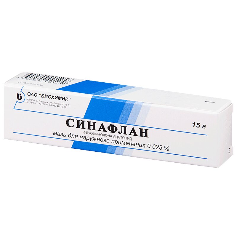 Инструкция по применению Синафлан 0.025% мазь для наружного применения 15 г