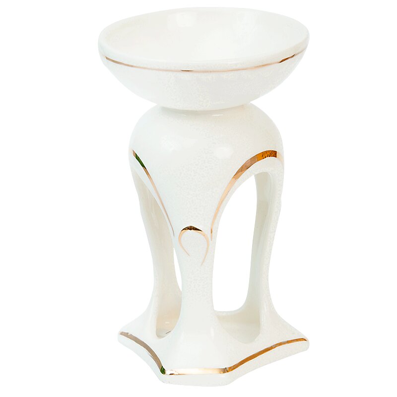Оригинальный дизайн этой керамической лампы не оставит никого равнодушным. Увеличенный объем чашечки позволит проводить более длительные аромапроцедуры. Эргономичная форма продумана до мельчайших деталей и обеспечивает плавный прогрев смеси для того, чтобы аромат эфирных масел заполнял помещение равномерно. Для использования необходимо наполнить верхнюю емкость водой и добавить несколько капель эфирного масла. В нижнюю часть лампы необходимо установить горящую чайную свечу. По мере испарения жидкости аромат будет равномерно рассеиваться по помещению, настраивая присутствующих на нужный лад. Высота - 16,5 см, расстояние от основания до чашечки - 8 см, состоит из 1 части.