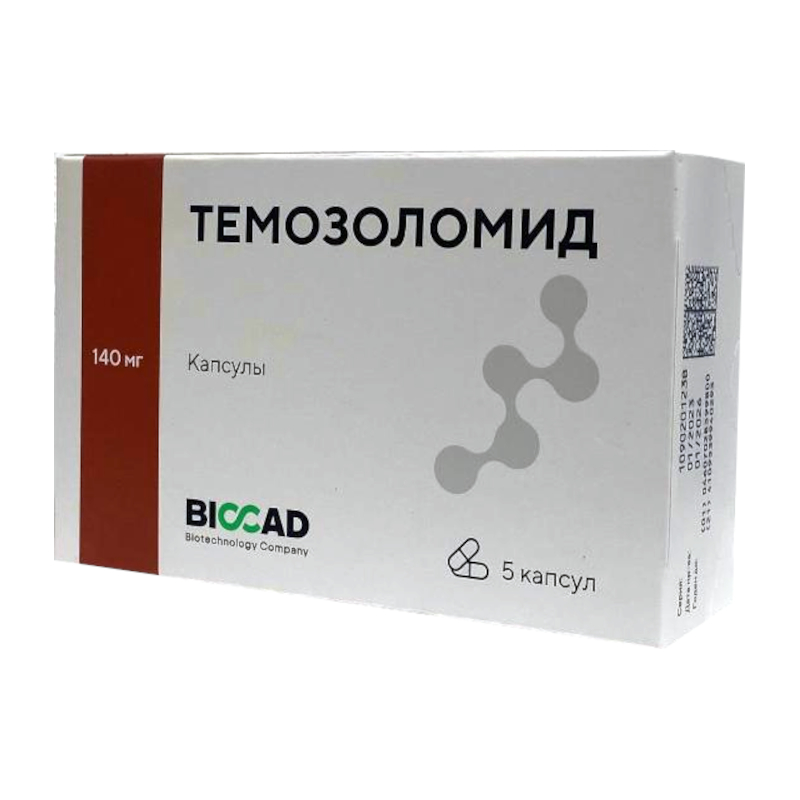 Инструкция по применению Темозоломид 140 мг капсулы 5 шт