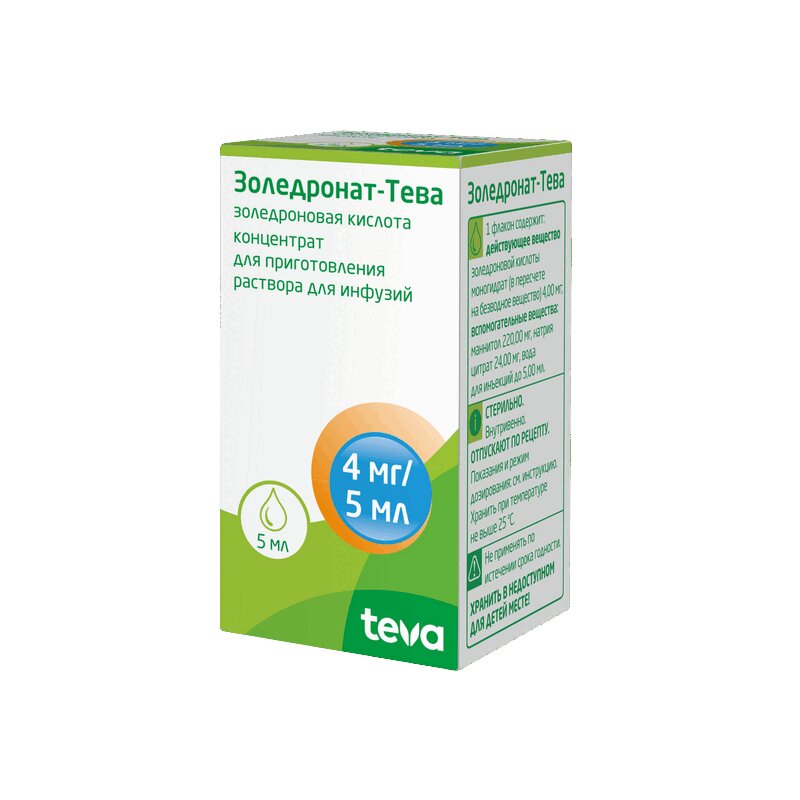 Золедронат-Тева 4 мг/5 мл концентрат для приготовления раствора для инфузий 5 мл 1 шт