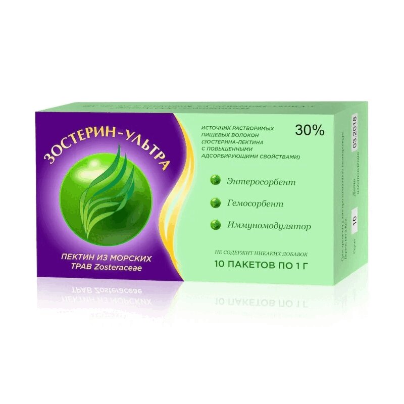 Зостерин – Ультра - полисахарид пектиновой природы (полигалактоуронан). Относится к группе органических природных сорбентов. Сырьем для получения служит морская трава Zostera marina, произрастающая исключительно в чистых акваториях РФ.