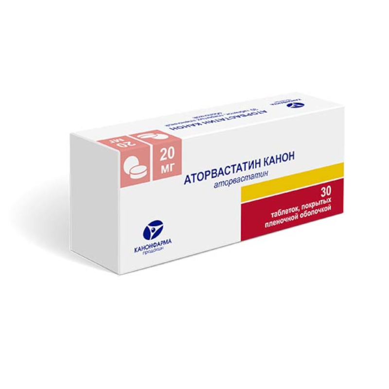 Аторвастатин Канон 20 мг таблетки покрытые пленочной оболочкой 30 шт