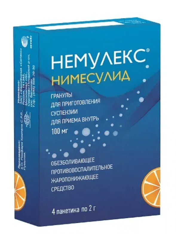 Инструкция по применению Немулекс 100 мг гранулы для приготовления суспензии в пакетиках 2 г 4 шт