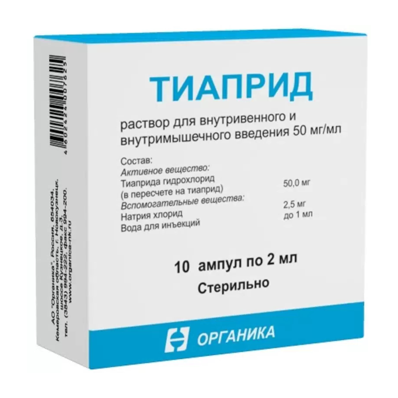 Тиаприд 50 мг/мл раствор для внутривенного и внутримышечного введения 2 мл 10 шт