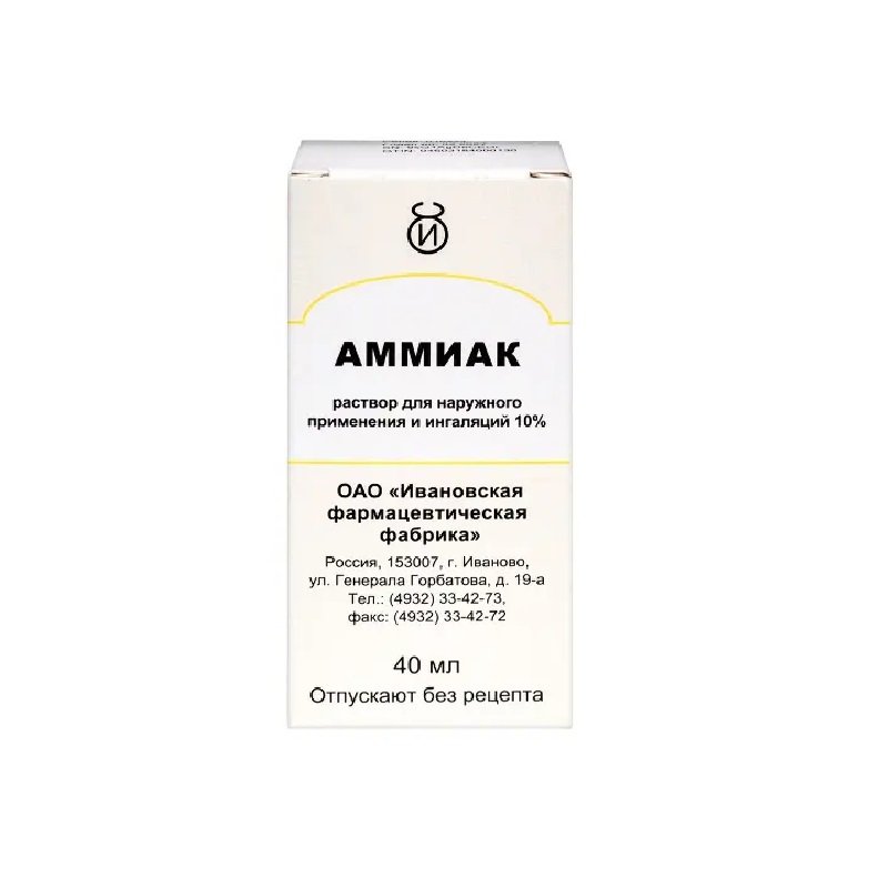 Аммиак 10% раствор для наружного применения и ингаляций 40 мл 1 шт