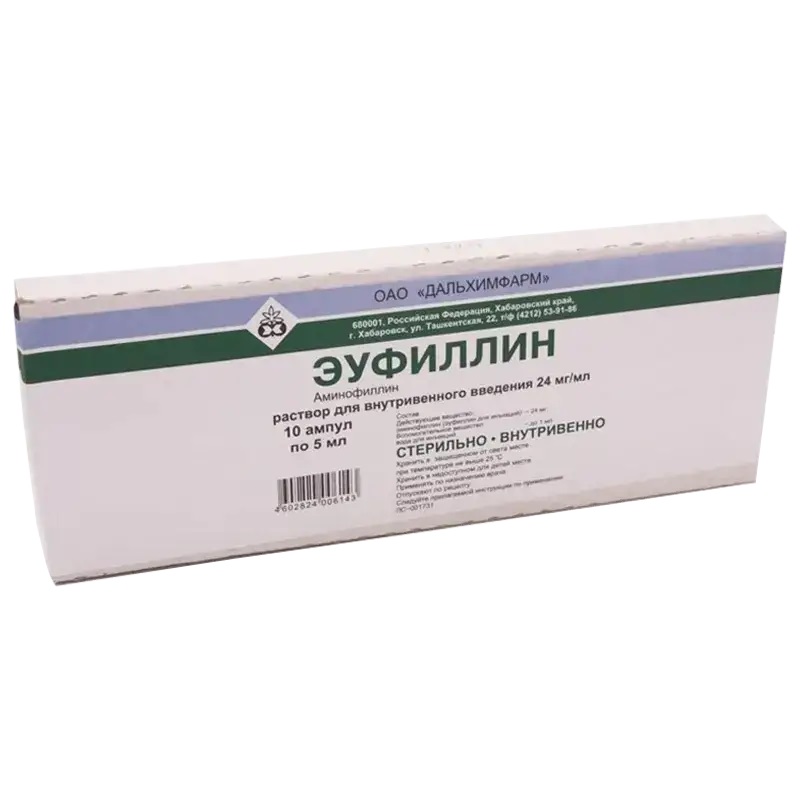 Эуфиллин 24 мг/мл раствор для внутривенного введения ампула 5 мл 10 шт Дальхимфарм