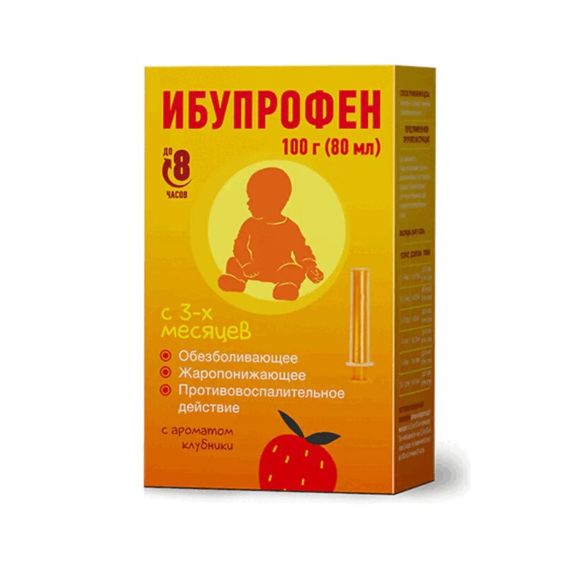 Ибупрофен 20 мг/мл суспензия для приема внутрь Для детей Клубника 80 мл 100 г 1 шт