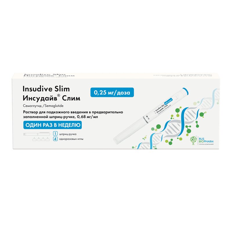 Инсудайв Слим раствор шприц-ручка 0,25 мг/доза шприц ручной1,5 мл 1+иглы 4