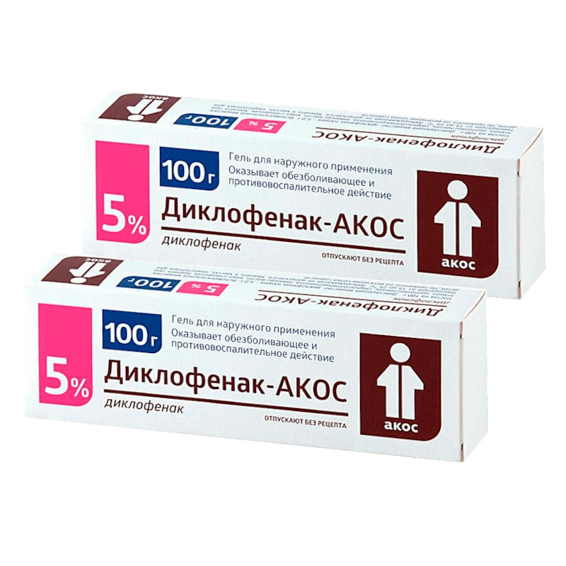 Инструкция по применению Набор 2Х Диклофенак-АКОС 5% гель для наружного применения 100 г