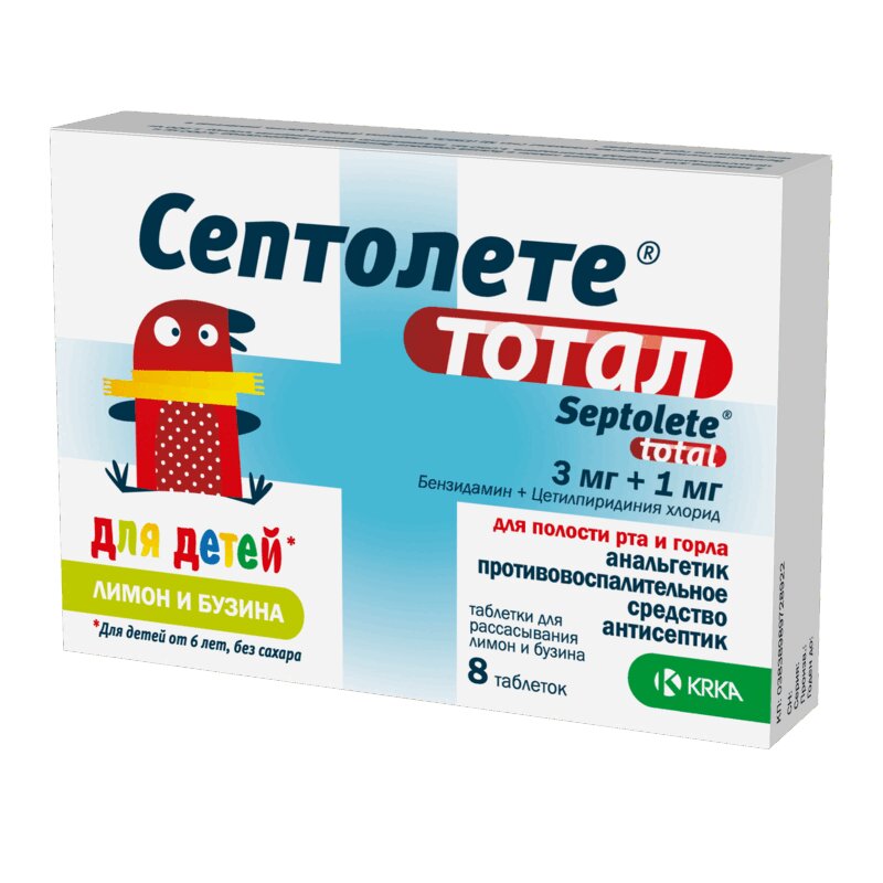 Инструкция по применению Септолете Тотал для детей таблетки для рассасывания Бузина-Лимон 8 шт