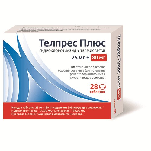 Телпрес Плюс 25 мг+80 мг таблетки 28 шт