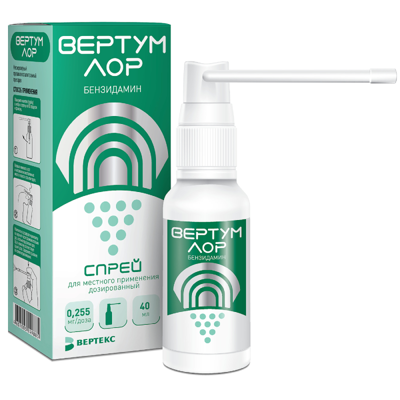 Инструкция по применению Вертум Лор 0,255 мг/доза спрей для местного применения 40 мл