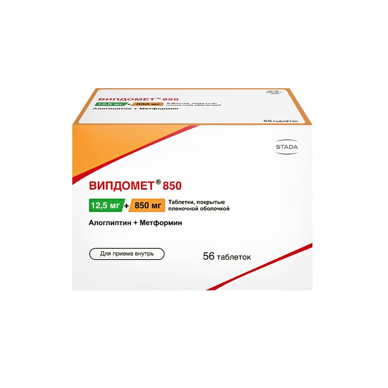 Препарат Випдомет® представляет собой комбинацию двух гипогликемических средств с взаимодополняющими и разными механизмами действия, предназначенную для улучшения контроля гликемии у пациентов с сахарным диабетом 2 типа (СД2): алоглиптина, ингибитора фермента дипептидилпептидазы-4 (ДПП-4), и метформина, представителя класса бигуанидов.