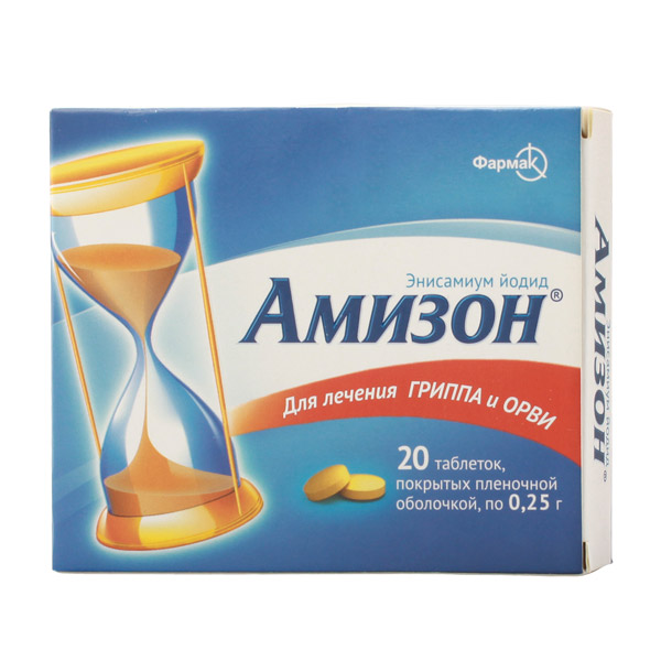 Амизон® - противовирусное средство, производное изоникотиновой кислоты. Эффективно подавляет действие вирусов гриппа и других возбудителей острых респираторных вирусных инфекций за счет непосредственного (ингибирующего) влияния на процесс проникновения вирусов через клеточную мембрану. Обладает интерфероногенными свойствами, способствует повышению концентрации эндогенного интерферона (интерферона альфа и интерферона гамма) в плазме крови в 3-4 раза.