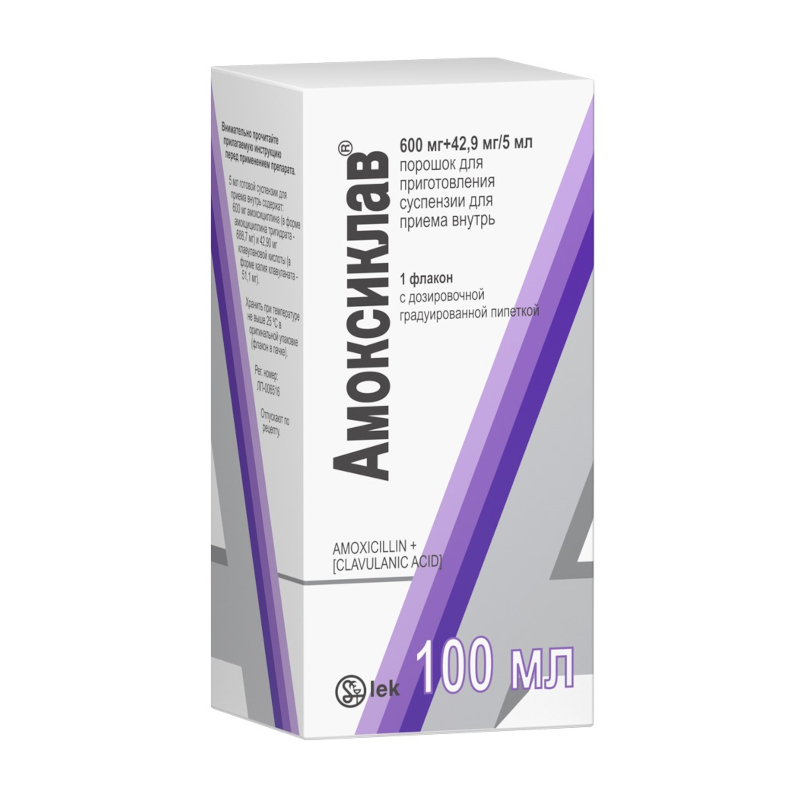 Амоксиклав 600 мг+42,9 мг/5 мл порошок для приготовления суспензии для приема внутрь 100 мл 1 шт
