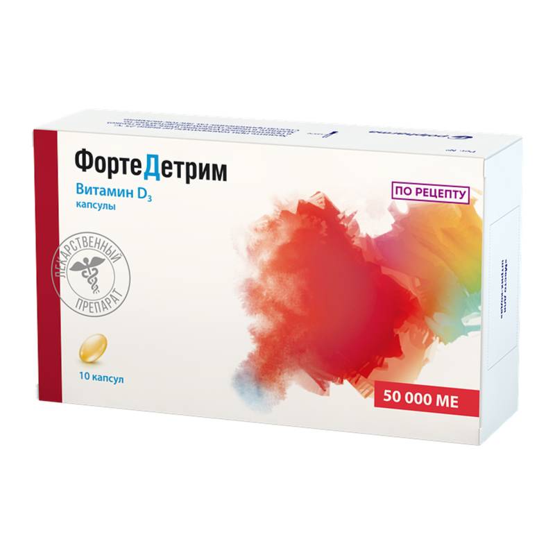 Фортедетрим – первый в России лекарственный препарат витамина D с дозировками 4 000 МЕ, 10 000 МЕ 20 000 МЕ и 50 000 МЕ в капсуле для лечения и профилактики дефицита и недостаточности витамина D у взрослых. Фортедетрим является лидирующим брендом в выписке эндокринологов и ревматологов.