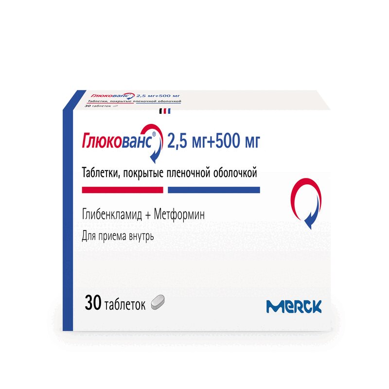 Глюкованс 2,5 мг+500 мг таблетки покрытые пленочной оболочкой 30 шт