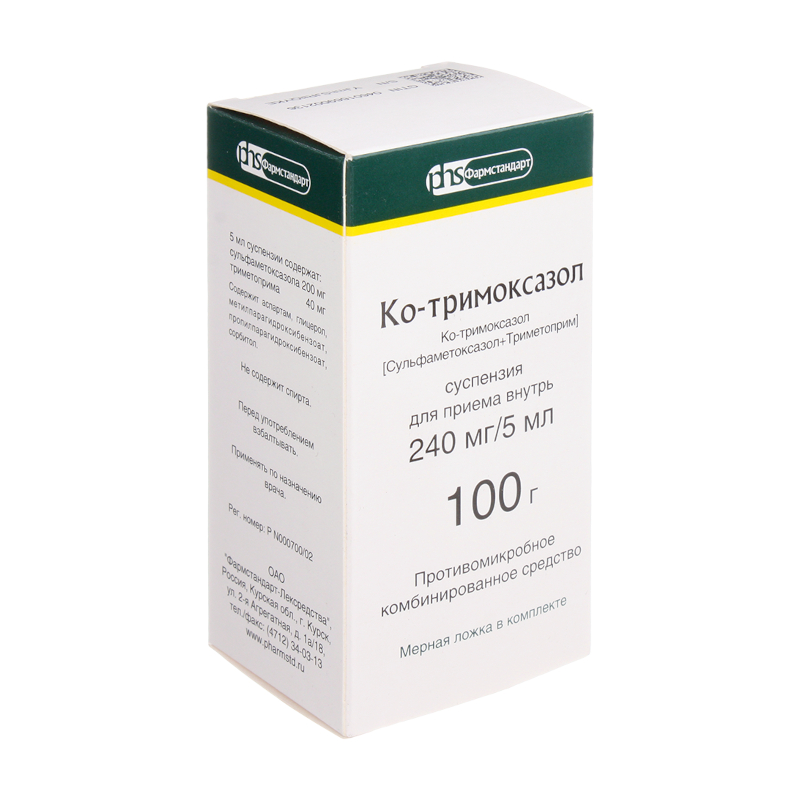 Инструкция по применению Ко-тримоксазол 240 мг/5 мл суспензия 100 г 80 мл