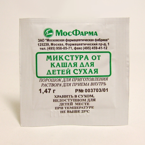 Инструкция по применению Микстура от кашля для детей сухая пор д/оралн р-ра 1.47 г пак N1
