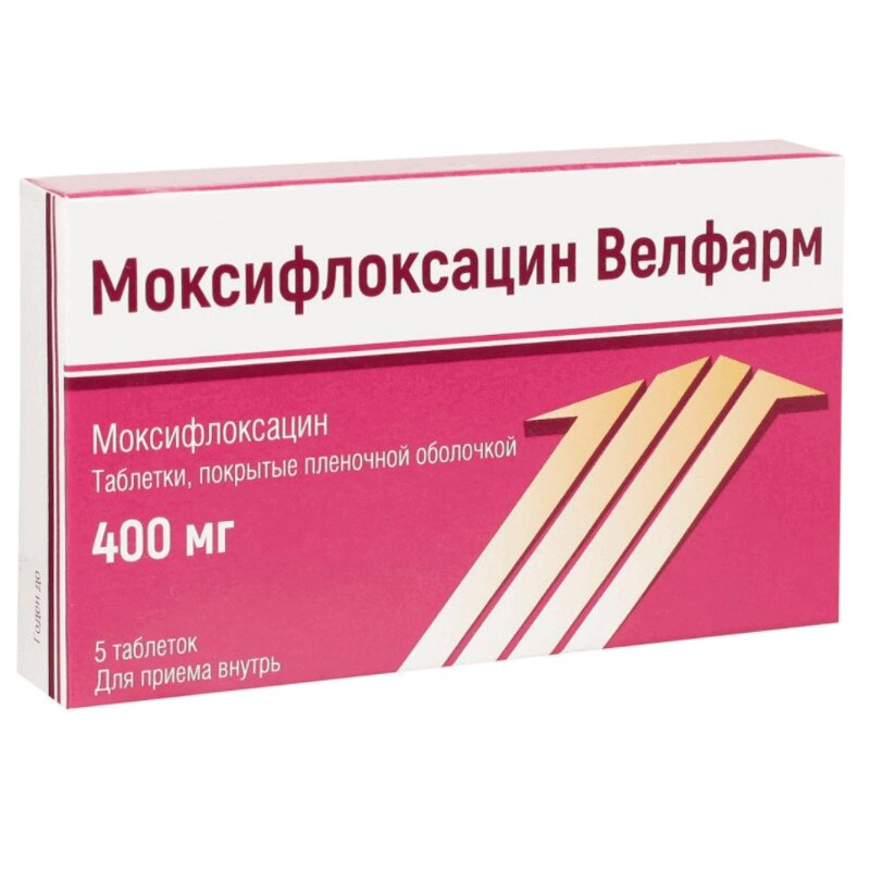 Моксифлоксацин Велфарм таблетки покрытые пленочной оболочкой упаковка контурная ячейковая 400 мг 5 шт