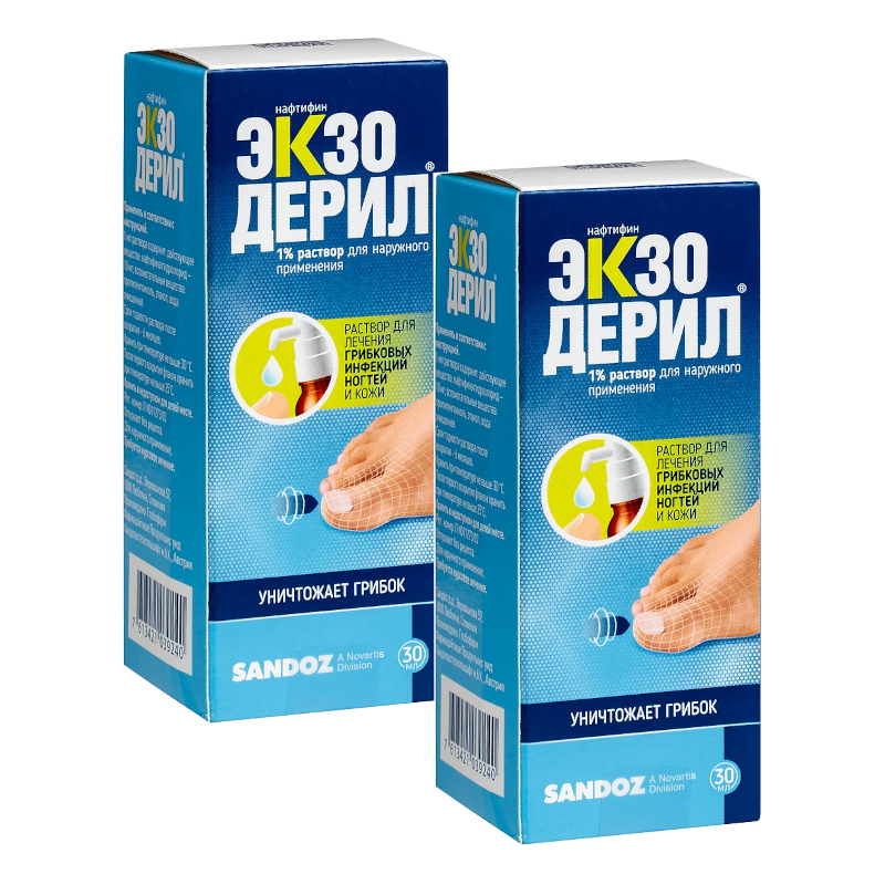 Инструкция по применению Набор 2Х Экзодерил 1% раствор для наружного применения 30 мл