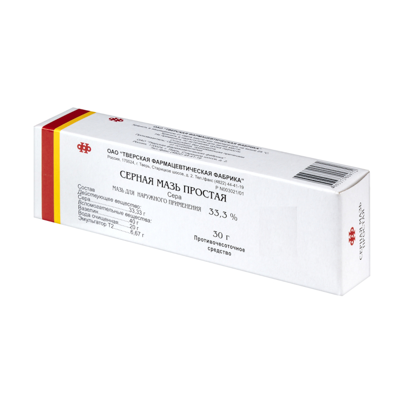 Инструкция по применению Серная мазь простая 33,3% для наружного применения 30 г