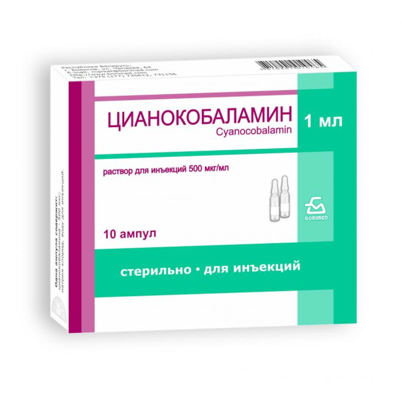 Инструкция по применению Цианокобаламин 500 мкг/мл раствор для инъекций 1 мл 10 шт