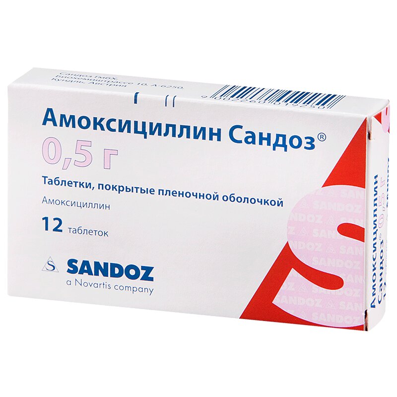 Амоксициллин Сандоз 0,5 г таблетки покрытые пленочной оболочкой 12 шт