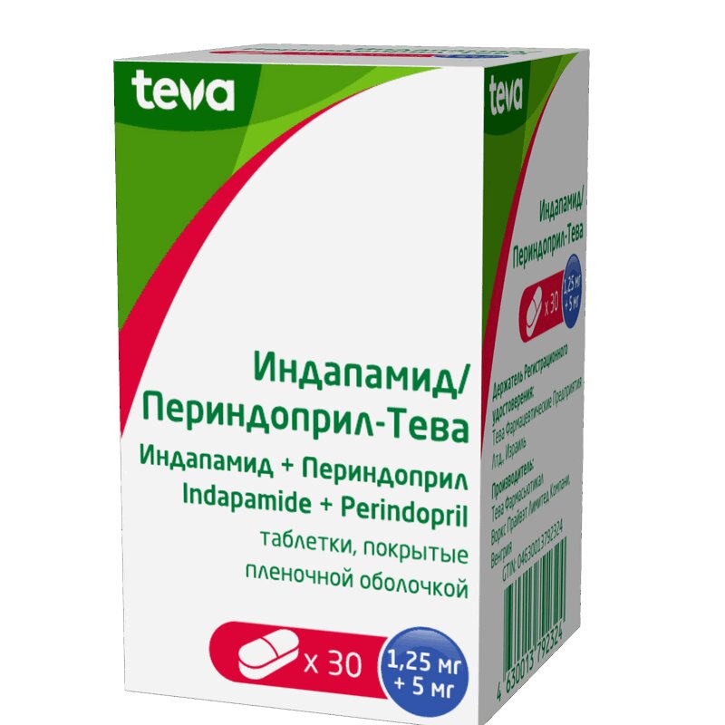 Индапамид / Периндоприл-Тева 1,25 мг+5 мг таблетки покрытые пленочной оболочкой 30 шт
