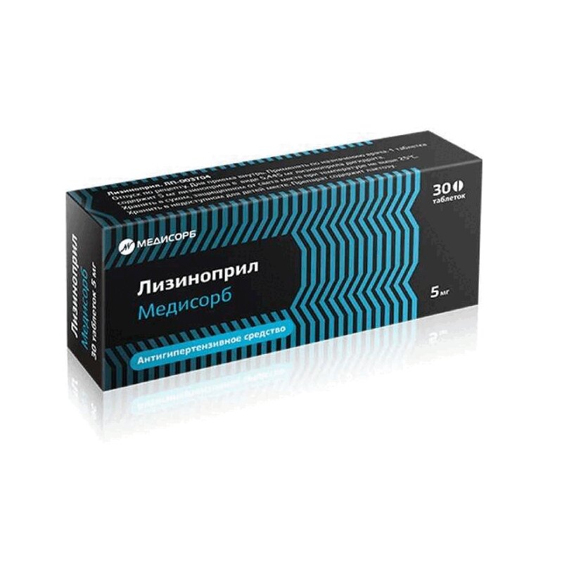 Лизиноприл Медисорб 5 мг таблетки 30 шт