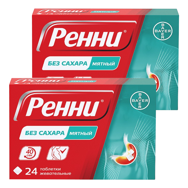 Набор 2Х Ренни 680 мг+80 мг таблетки жевательные без сахара Мята 24 шт