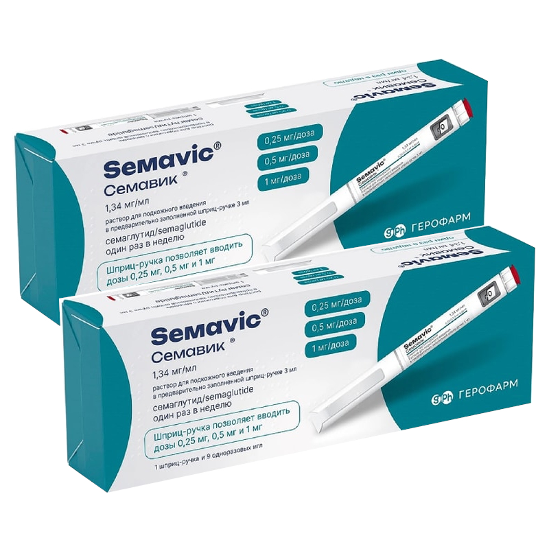 Набор 2Х Семавик 1,34 мг/мл раствор для подкожного введения 0,25/0,5/1 мг/доза шприц-ручка 3 мл 1 шт + одноразовые иглы 9 шт