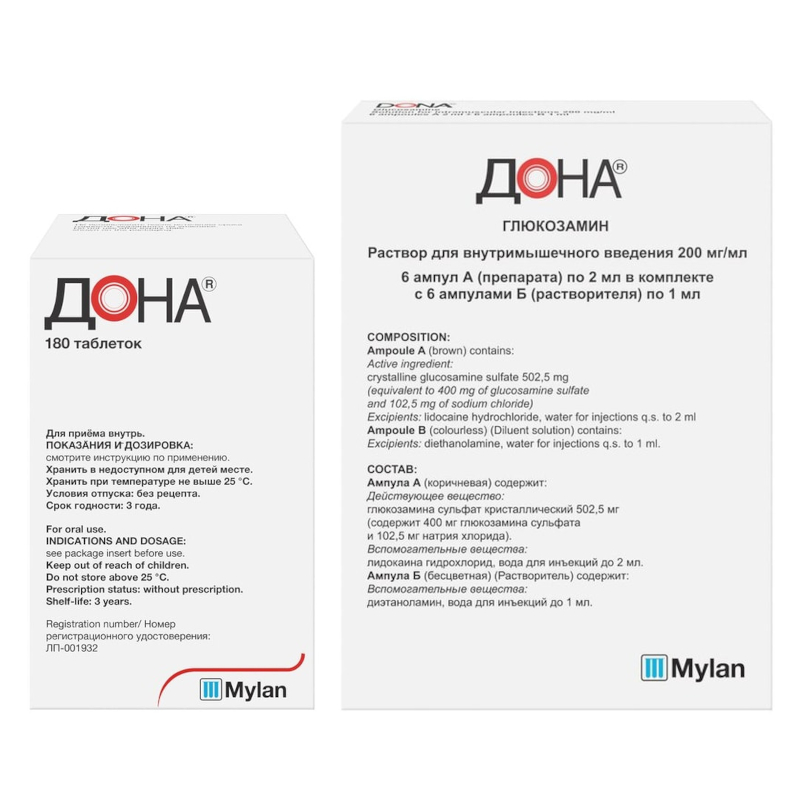 Инструкция по применению Набор Дона 750 мг таблетки 180 шт + Дона 400 мг раствор для инъекций 2 мл 6 шт