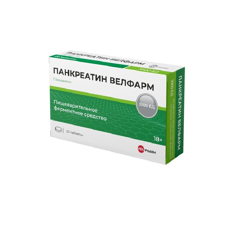 Панкреатин Велфарм 3500 ЕД таблетки кишечнорастворимые покрытые пленочной оболочкой 20 шт